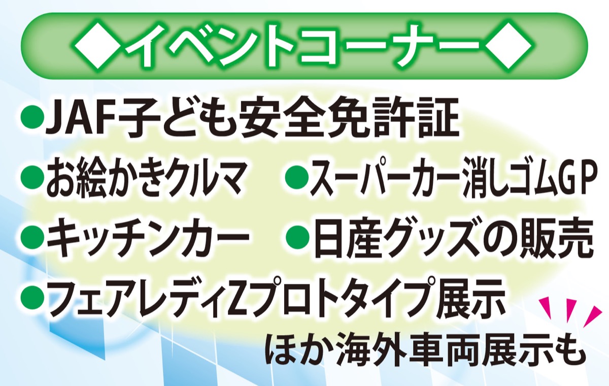 開発拠点として普段は入場できないNTC。フェア会場では、子ども向けイベントや、日産グッズの販売、キッチンカーなども登場!また、フェアレディZのプロトタイプ展示も見逃せない。みんなでNTCへ行こう!