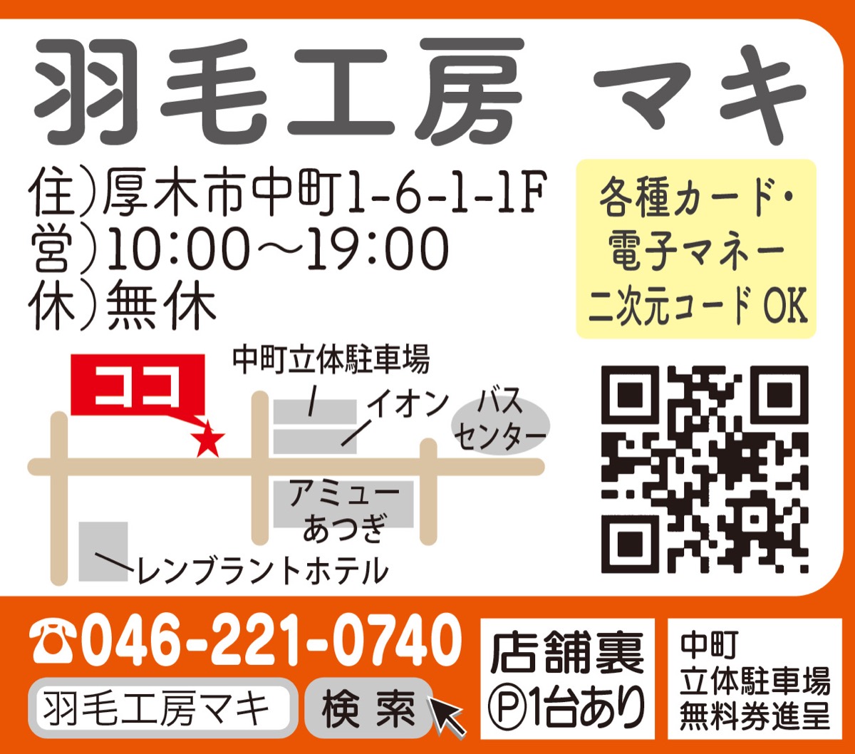 買替えや打ち直し(リフォーム)なら本厚木駅東口3分の創業73年・羽毛工房マキ。店内に羽毛ふとん製造機を常設し、プロの技で本物志向の羽毛ふとんに仕上げる。