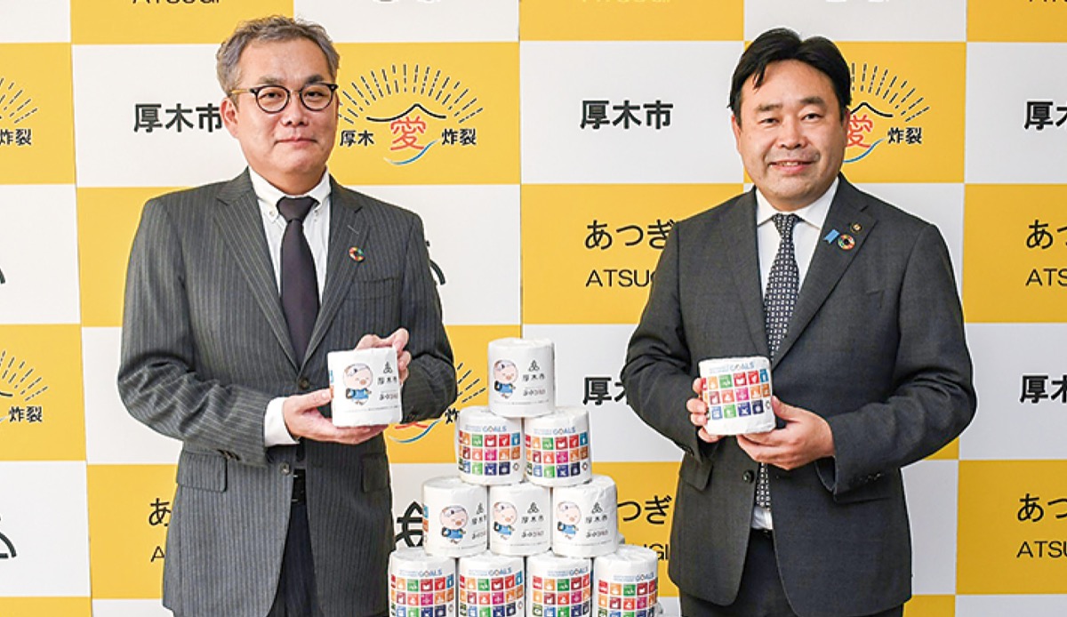 同社は瓶や缶、古紙回収やリサイクルを行っている。寄贈したトイレットペーパーは市内小学校で給食に出された牛乳パックから再生されたもの。リサイクルを「見える化」し、児童らにSDGsへの取り組みへの理解と啓発を図れることを期待する。