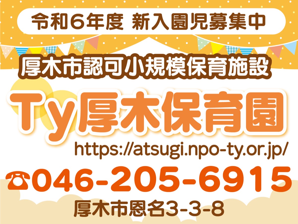 厚木市恩名にある小規模保育所「Ty厚木保育園」では現在、熱い保育士を募集。同園は現在0〜2歳の乳幼児が21人が通う。子ども一人ひとりの五感を大切にする保育を方針に掲げ、保育士らは人生のスタートである乳幼児を預かる責任ある仕事と認識し、こども一人に寄り添い、日々”手厚い保育”を行う。