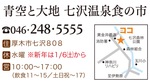 厚木市七沢808番地に昨年4月オープンした、食と観光と健康をテーマにした「青空と大地 七沢温泉食の市」。