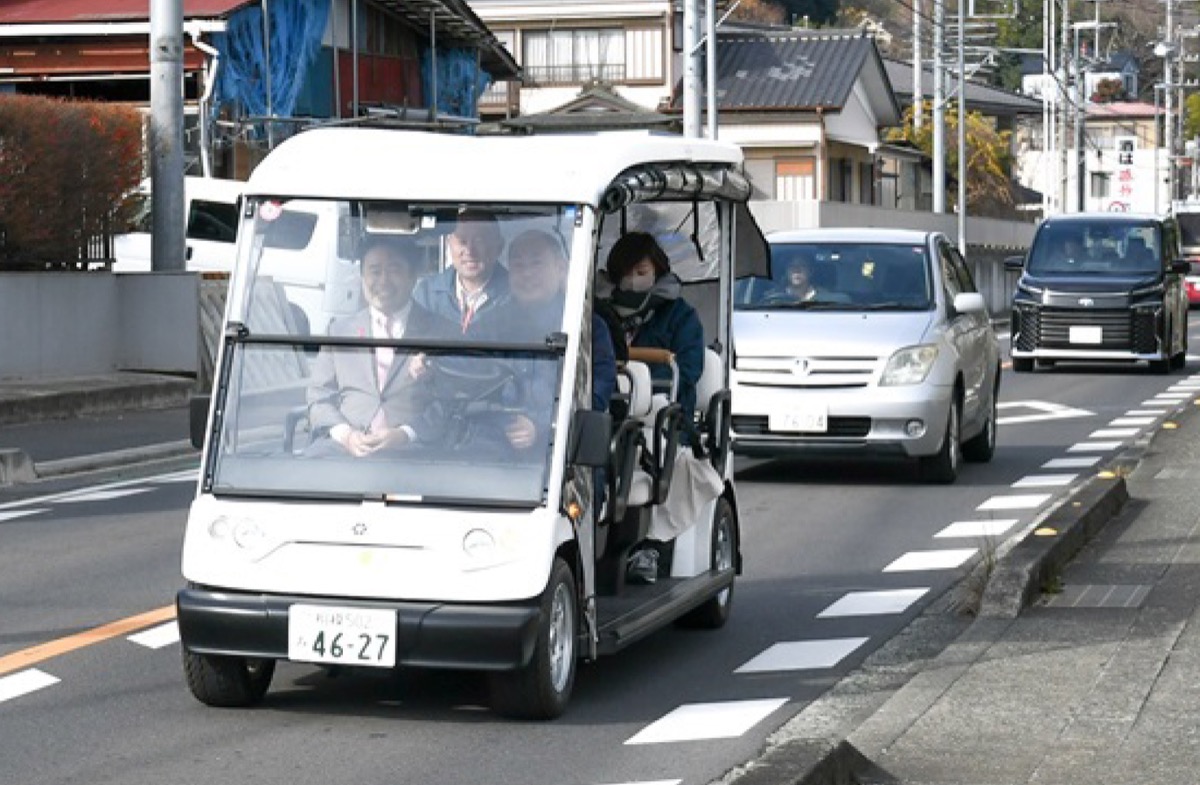 厚木市七沢地区で昨年12月18日、観光利用が期待されるエコな乗り物「グリーンスローモビリティ」の公道走行実験が始まった。