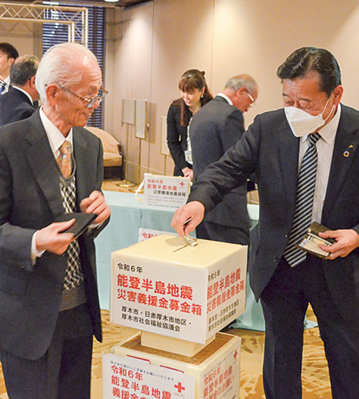 新春を祝い「厚木市合同賀詞交換会」が1月5日、「厚木商工会議所新春賀詞交換会」が11日、「厚木青年会議所賀詞交歓会」が9日に市内中町のレンブラントホテル厚木で行われた。