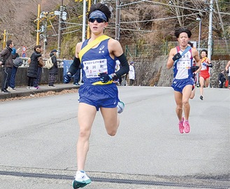 愛川町は序盤から好位置をキープ。そして3区の中武泰希選手と7区の新井沙希選手が区間1位の快走で順位を上げゴールした。