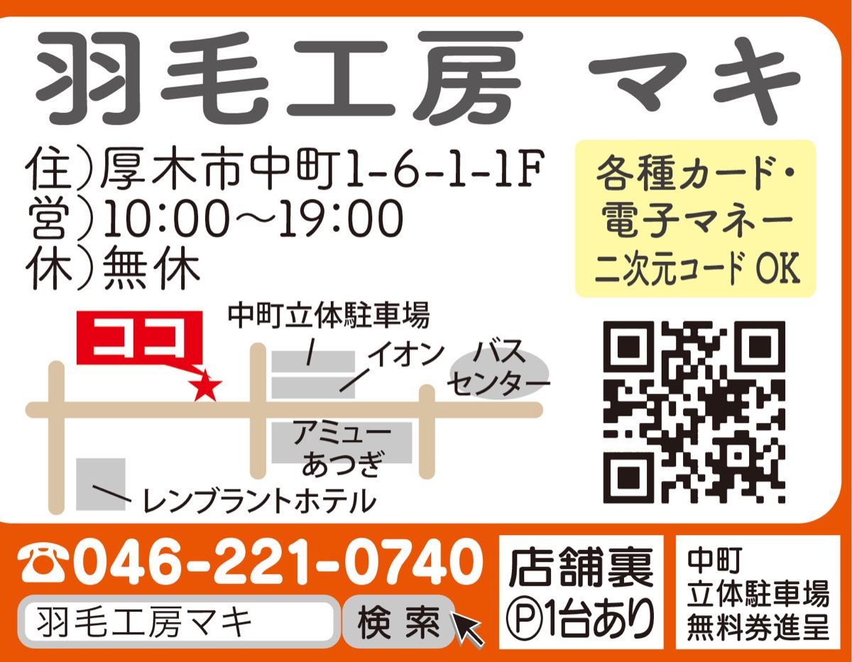 本厚木駅東口から徒歩3分の創業73年・羽毛工房マキでは2月29日(木)まで在庫一掃売り尽くしセールを開催中だ。