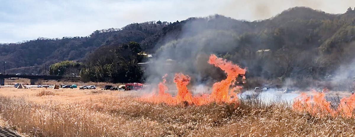 中津川は町内の複数個所がバーベキューやキャンプで利用され、過去にたき火の火が枯れ草などに燃えうつる火事が度々発生していた。コロナ禍でキャンプ人気が高まったせいか、2021年と22年に町内で発生した火災36件のうち、20件は河川敷での火災だった。八菅橋近くには河川敷に面して住宅が連なり、住民の不安もあった。県厚木土木事務所では河川利用者に直火禁止などを繰り返し広報してきた。