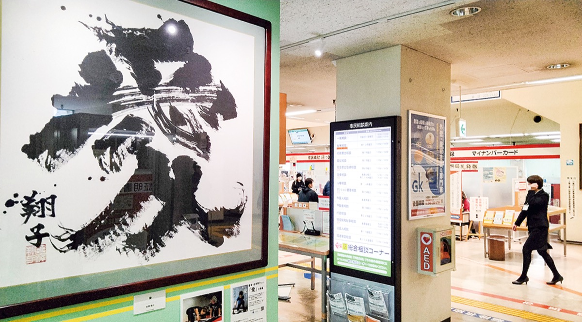 書道家・金澤翔子さんの作品「愛」が、先月額装され、市役所1階市民ホールに展示された。神奈川県の「共に生きる」の作品や、大河ドラマ「平清盛」のタイトルなどで知られる。昨年末にアミューあつぎで金澤さんの書道展が開かれた時に揮毫したもので、金澤さんから寄贈された。縦横のサイズは140cm。
