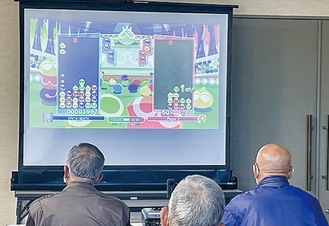この日は74歳から80歳までの男女10人が参加した。(株)共同通信デジタルの協力のもと、「ぷよぷよeスポーツ」を体験。試行錯誤しながらもゲームを楽しんでいた。