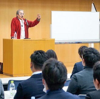 講師の岩井氏は、リクルートのトップ営業マンを経て、現在は教育事業を行う(株)モノリスの代表取締役会長などを務める。TV番組「マネーの虎」の元虎として多くの人に知られ、現在は「令和の虎チャンネル」などを主宰する。講演では自身の経験から、人間性の大切さやSNSの重要性を語った。また当日は懇親会も開かれ、多くの参加者が交流を楽しんだ。