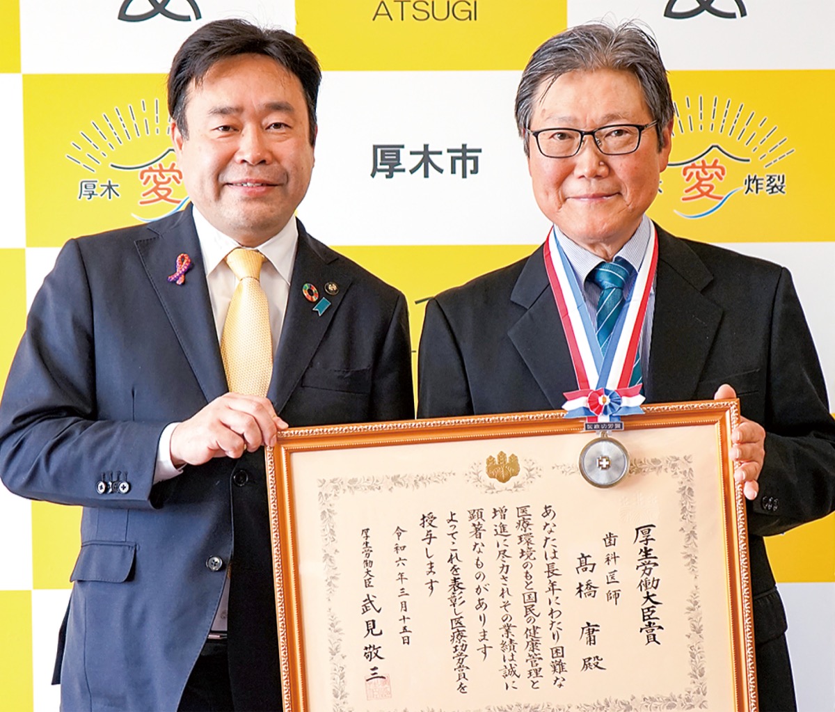 同表彰は、地域に密着した活動を続けてきた医療福祉関係者を表彰するもの。高橋さんは1985年の開業以来、障害者の歯科診療に尽力。また2017年から19年まで厚木歯科医師会の会長も務めたほか、厚木市の障害者歯科担当医としても活動。2005年からは地域作業所への訪問診療も行っている。