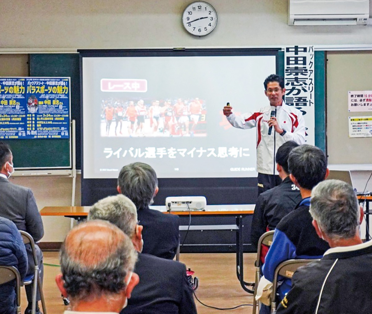 愛川町スポーツ協会(古座野君夫会長)は3月24日、パラスポーツへの理解を深めるセミナーを第1号公園体育館で開催した。この日はマラソン伴走者・トライアスロンガイドの中田崇志さんがパラスポーツの魅力を語った。