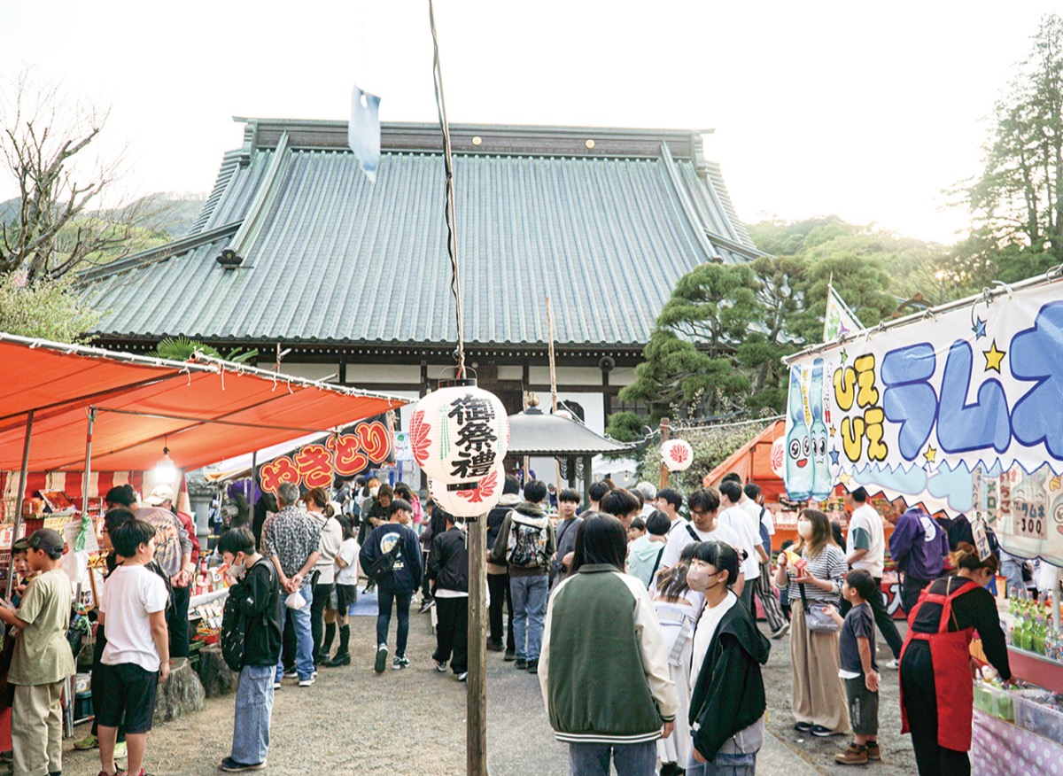 この祭りは山の守り神半僧坊大権現の分身を静岡県のお寺から1890年に勧請して以降、続いている。かつては祭りの日に地域に嫁いだ花嫁などがお披露目をかねて詣でたことから「美女まつり」とも呼ばれる。嫁入りした翌年も晴れ姿でお礼参りに訪れたという。鴨下住職は「今でも晴れ姿ではないが夫婦でお礼参りをする方もいる」と話す。今年は103店もの模擬店が山門から本堂までずらりと並び、午後4時過ぎから、寺に向かう平山橋の上が多くの人でにぎわった。
