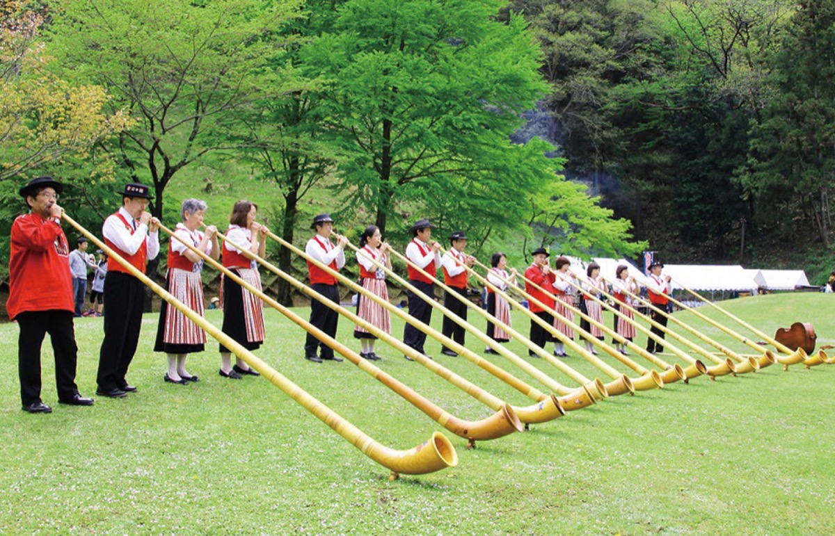 芝生広場ではアルプホルンやオカリナ、フラダンスなどの野外コンサートを開催。綿菓子や焼きそば、キッチンカー、竹の一輪挿し、竹とんぼ等の各種販売や、アウトドア太極拳などの体験も楽しめる。