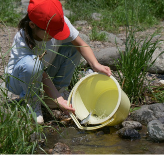 愛川町の子どもたちによる稚アユの放流が5月22日、中津川で行われた。中津川漁業協同組合(木藤照雄代表理事組合長)協力。