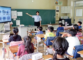 6日、田代小学校で行われた授業で講師は「ペットボトルを資源にするためにキャップやラベルを剥がすことや飲み終わったら洗うことが大事です」と児童に説いた。児童は「リサイクルのことが分かり良かった。家族にも伝えたい」と話した。町環境課の担当者は「授業でリサイクルの大切さを知ってもらい、学んだことを多くの人に広めてもらえたら嬉しい」と話した。
