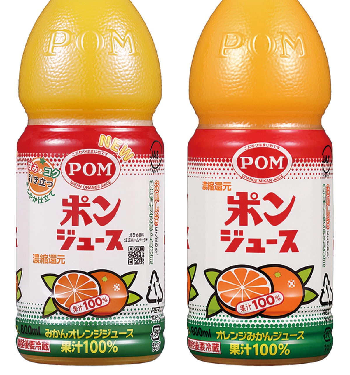 国産みかんの配合を増やし、ラベル表記も「オレンジ・みかん」の順番が逆になった。味は「甘みとこくが引き立つまろやか仕立て」に。従来はブラジル産のオレンジ原料を使っていたが、今後は他の国からの調達も品質を確かめながら検討するという