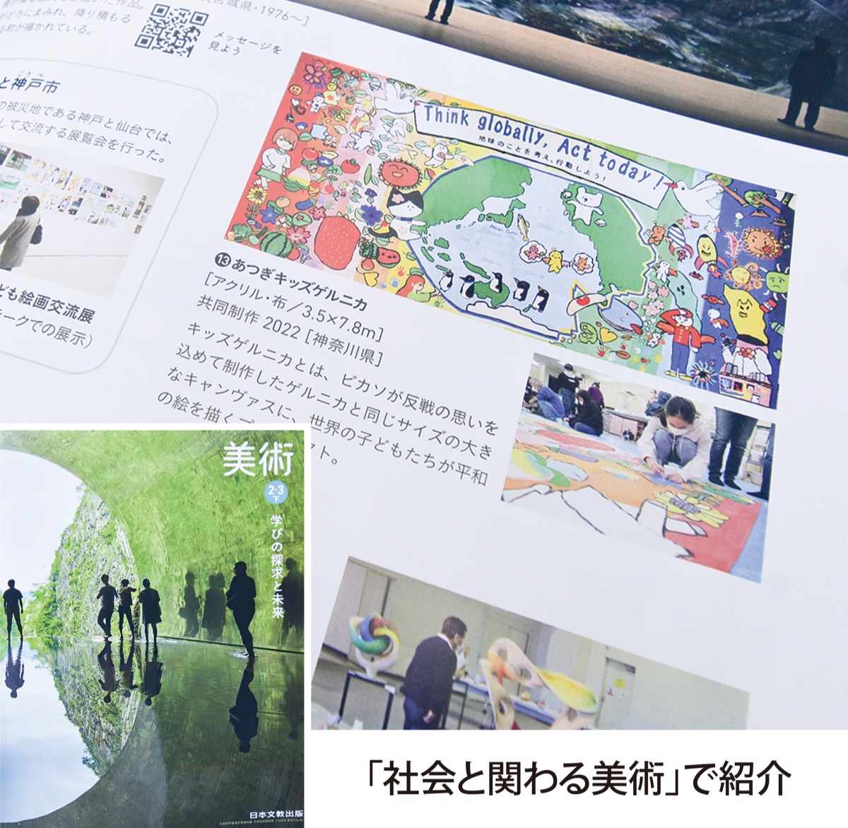 同社によるとキッズゲルニカは平和学習の取り組みであり「ページの趣旨に合っていること、地域からグローバルな世界に、という視点を養ってもらうため」掲載が決まったという。同社の美術教科書は国内で6割ほどのシェアがある。厚木を含む全国の教科書は8月末までに選定される予定で、厚木市では現在、光村図書出版の美術教科書が使われている。