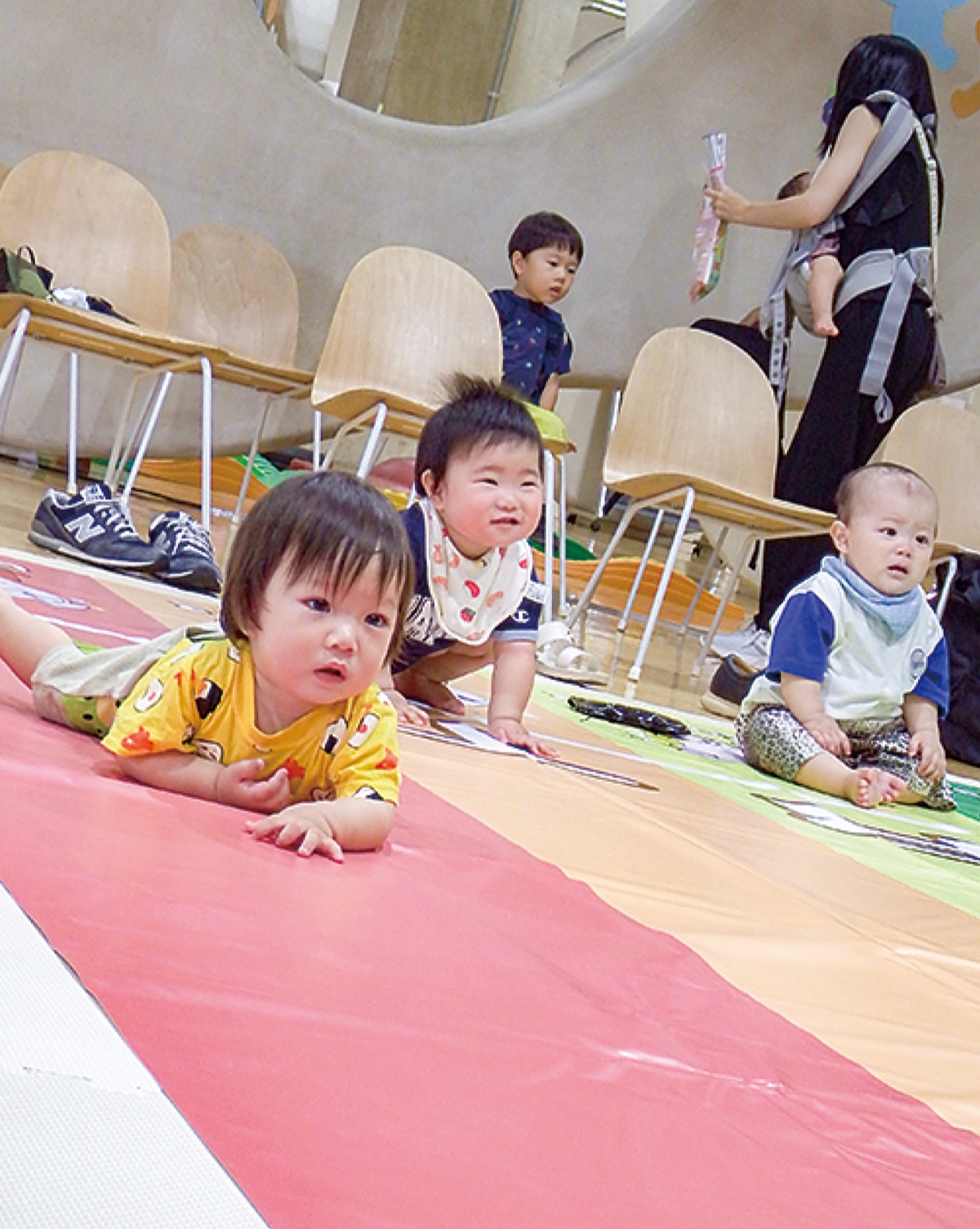 未歩行の乳幼児が参加する「アミューあつぎ あかちゃんハイハイレース」(アミューあつぎ主催)の第1回目が7月6日、同館8階の屋内広場solaで開かれた。当日は120人の乳幼児が参加し、保護者や通行人の声援や拍手で会場内は盛り上がりを見せていた。