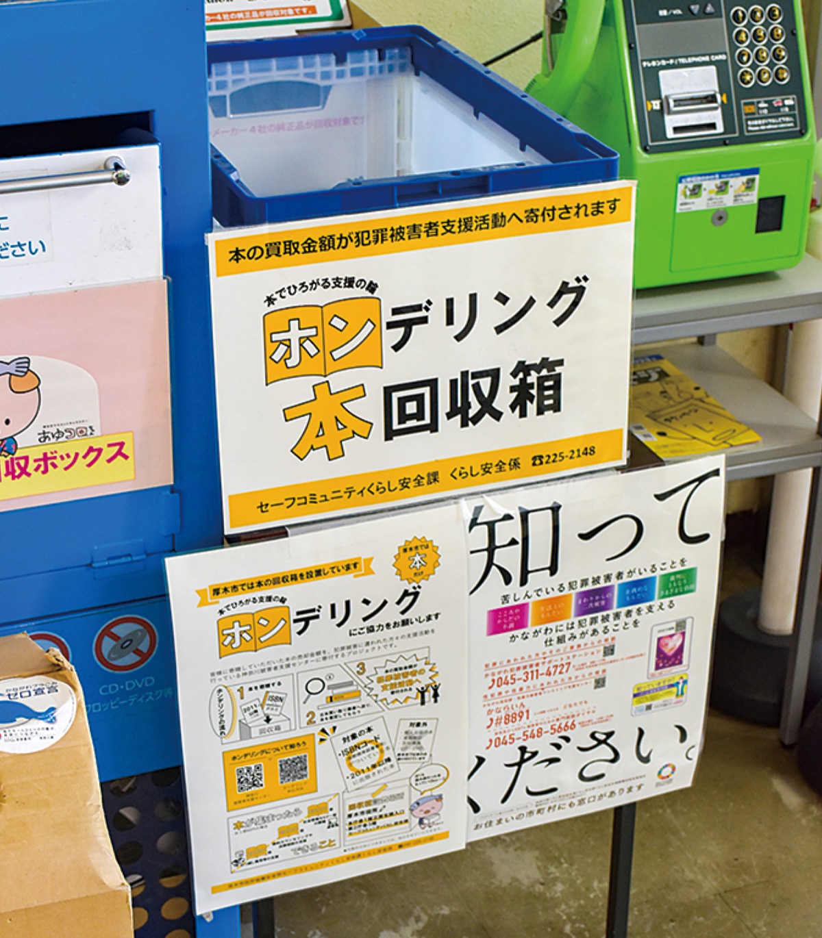 厚木市では、不要な本の売却金額を犯罪被害者の支援に活用するプロジェクト「ホンデリング」に協力している。