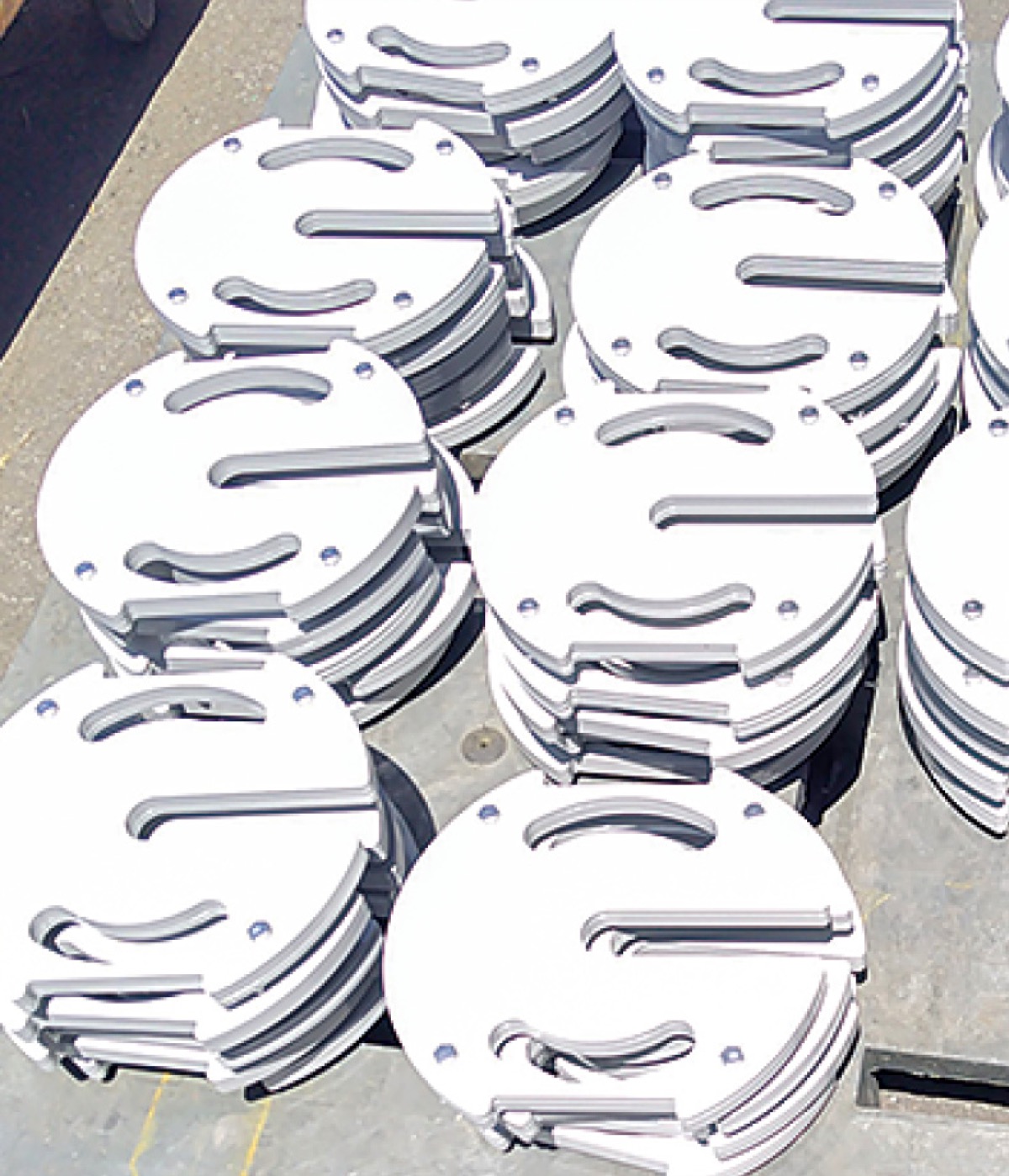 これは同校が体育大会等で熱中症対策に使うテントの重りを近隣住民や公民館から借りていることを、日本フルハーフ顧問で睦合西公民館・地区館長の中野和辰さんが聞いたことがきっかけ。同社で検討され社会貢献活動の一環として寄付につながった。重りは1枚約5kgで同校のテントを確認し、同社で制作されたオリジナル品だという。