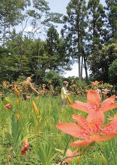 花見会は28日(日)、正午まで。花を管理する荻田豊さんは「群生したヒオウギの姿を楽しんでもらえたら」と話す。