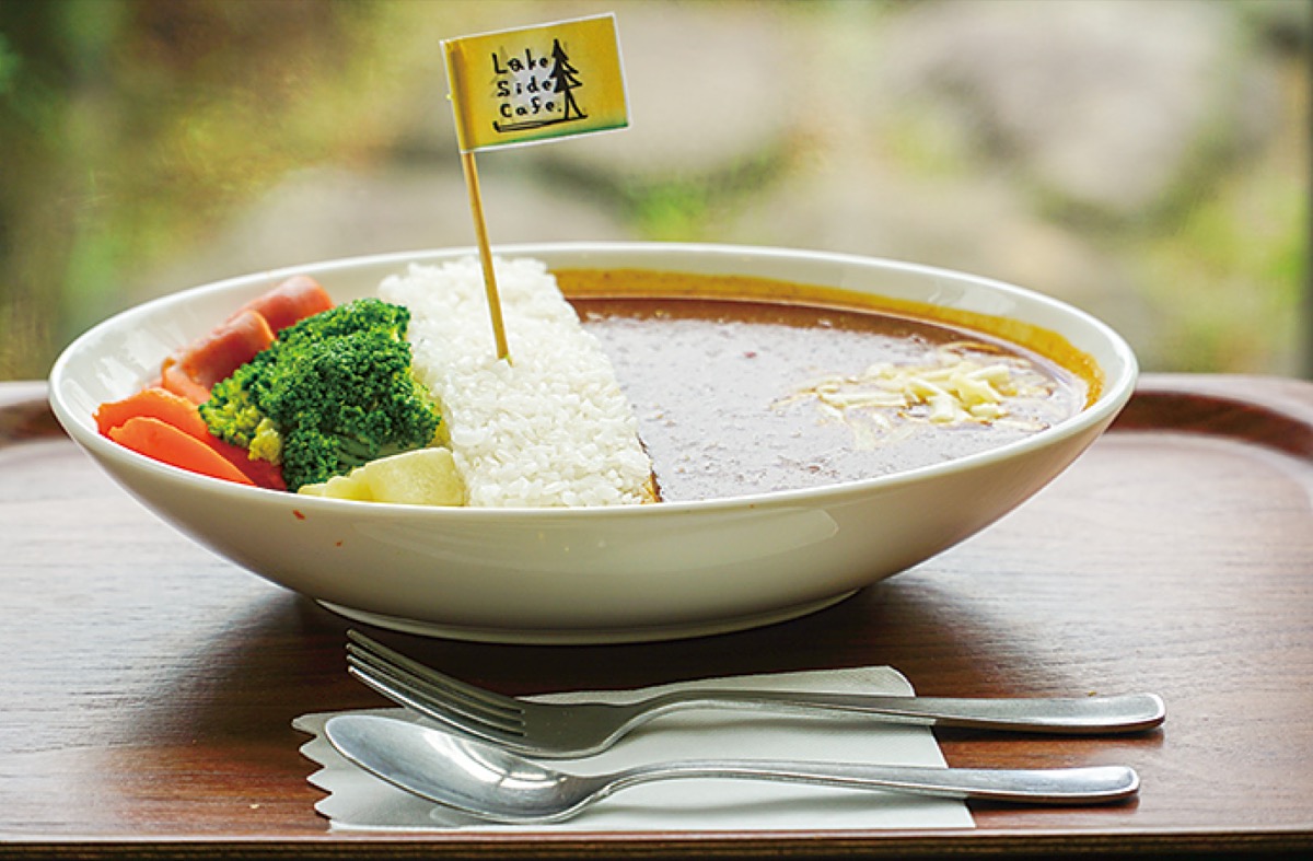 同店の一番人気「宮ヶ瀬ダム放流カレー」はルーにショウガやガラムマサラ、クミンなどのスパイスをふんだんに使用。ライスはダムを、ジャガイモは発電所を、ブロッコリーはダム周辺の木々を表現する。旗を抜き、木々に隠れたソーセージを抜くと、カレーが反対側に流れ込む仕掛けで、多い日には1日150食以上を提供する。