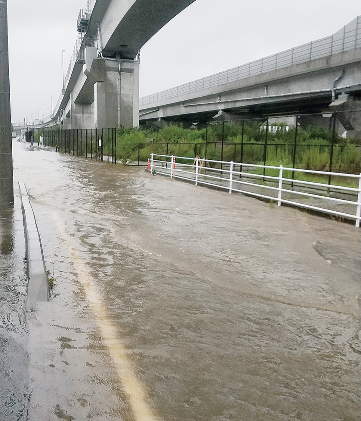 大雨による相模川増水の影響を受け、酒井スポーツ広場と戸沢橋スポーツ広場では一面が冠水した。