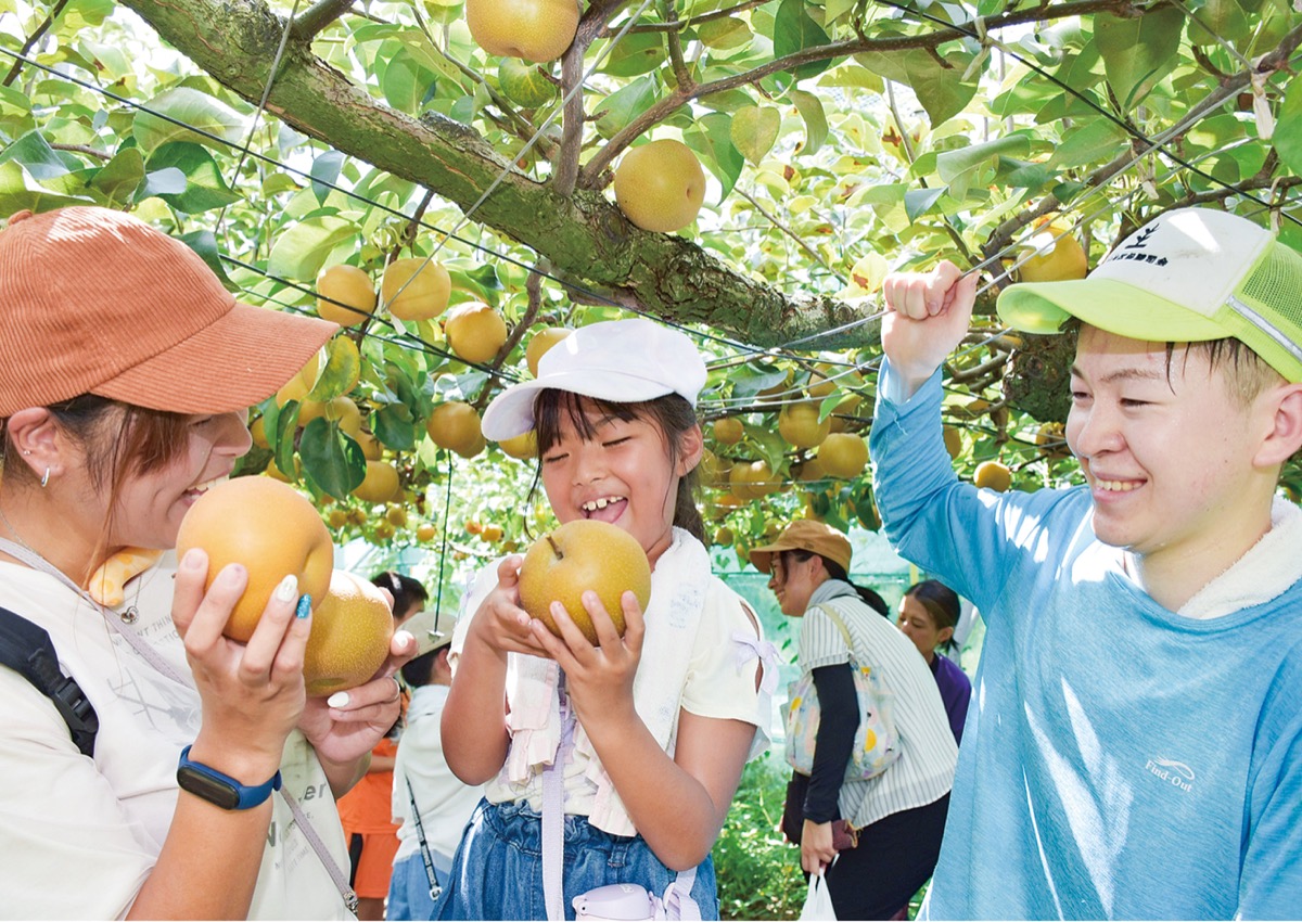 JAあつぎ依知支所で8月24日、地域の親子を招いた「親子ふれあい収穫祭」が行われ、地区内の果樹園で梨狩りを楽しんだ。