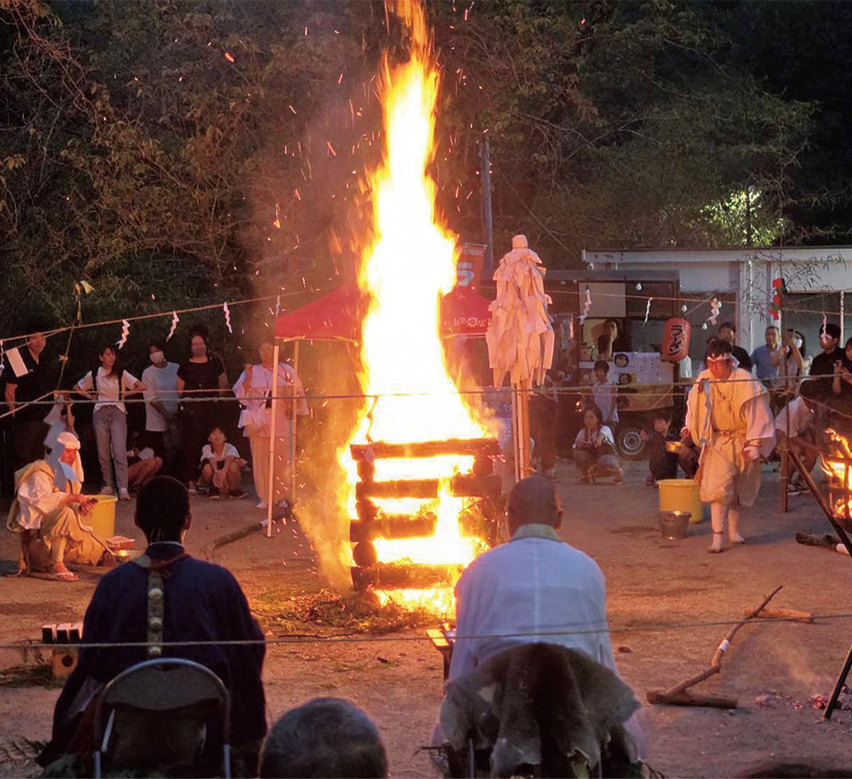 地域住民との交流を深めるため「七沢の火祭り」と称し、こども縁日やステージイベントも企画。境内が多くの人で埋め尽くされ、祭りの最後は餅撒きで締めくくられた。