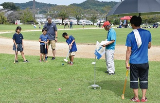 父親とペタンクを体験した小学3年生の児童は「難しかったけど上手にできて楽しかった」と笑顔で話した。
