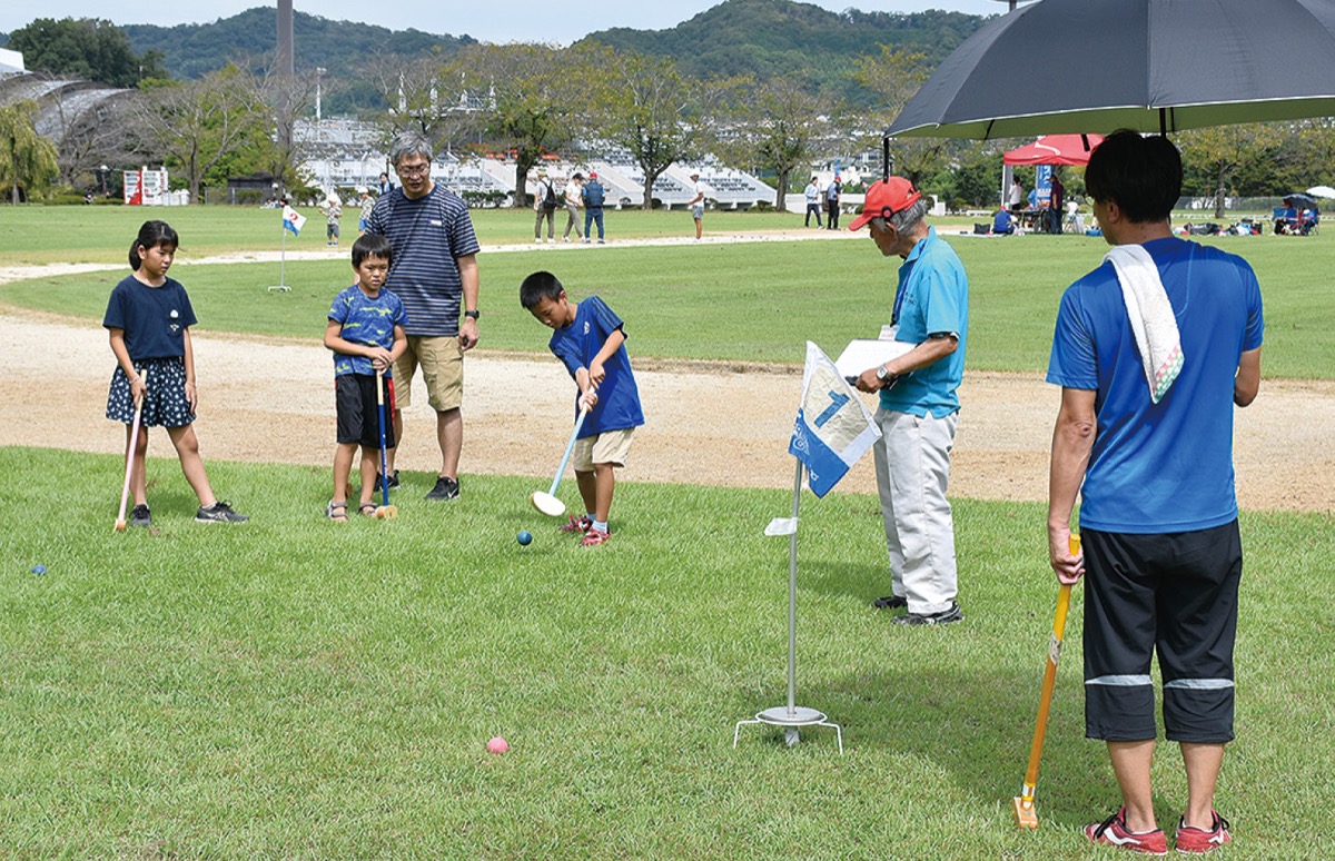 世代を超えてスポーツに親しんでもらおうと市が企画。会場では、モルックやカーレットなどのニュースポーツをはじめ、ティーボール、ペタンク、グラウンド・ゴルフなどさまざまな競技が用意され、親子連れや高齢者などが秋空の下で心地よい汗を流した。各競技を体験すると抽選会に参加できるスタンプラリーもあり、台紙を片手に会場をめぐる親子連れなどの姿も見られた。