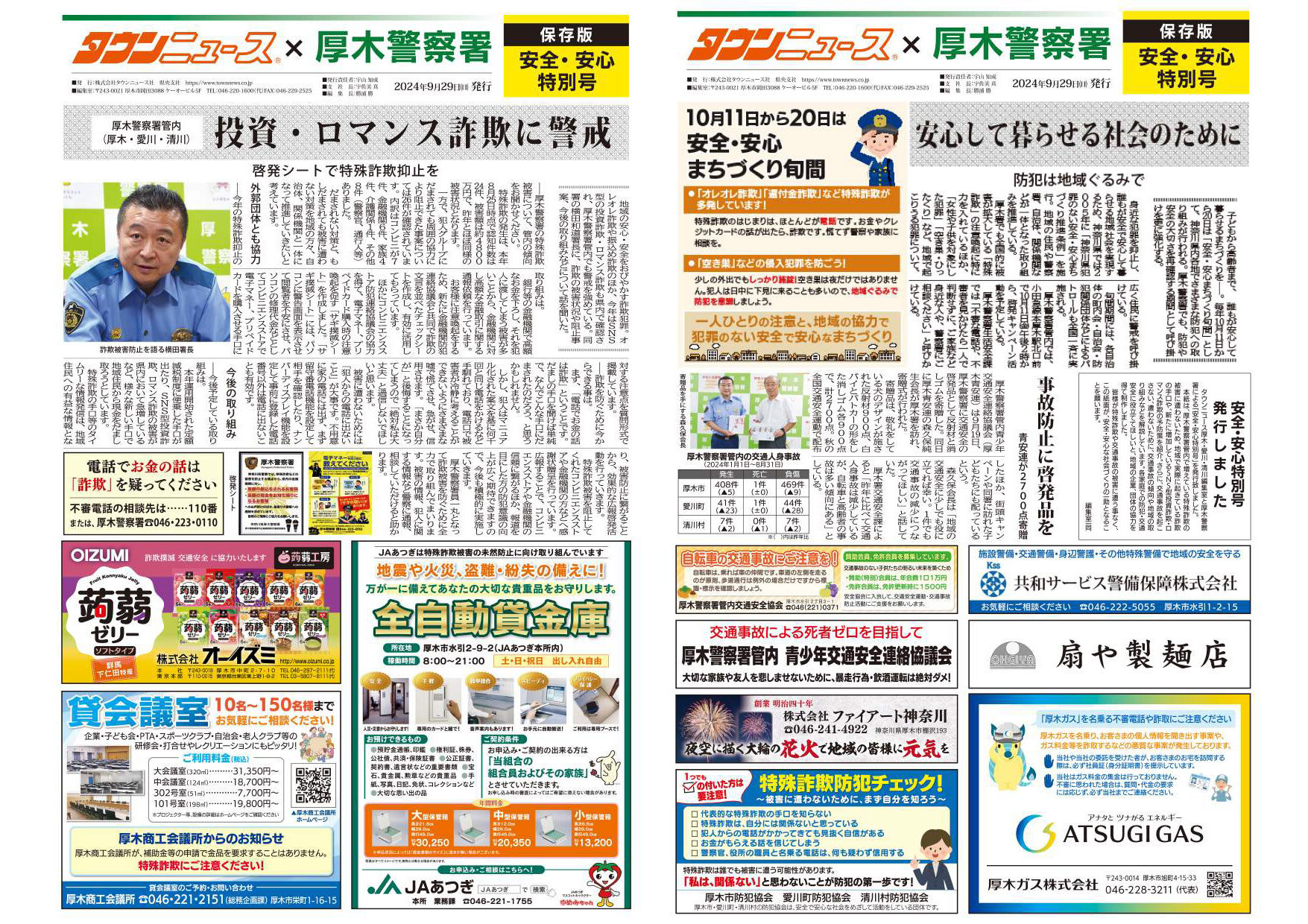 子どもから高齢者まで、誰もが安心して暮らせるまちづくりを──。毎年10月11日から20日は「安全・安心まちづくり旬間」として、神奈川県内各地でさまざまな防犯への取り組みが行われる。厚木警察署でも、防犯や安全の大切さを再確認する期間として呼び掛けを更に強化する。