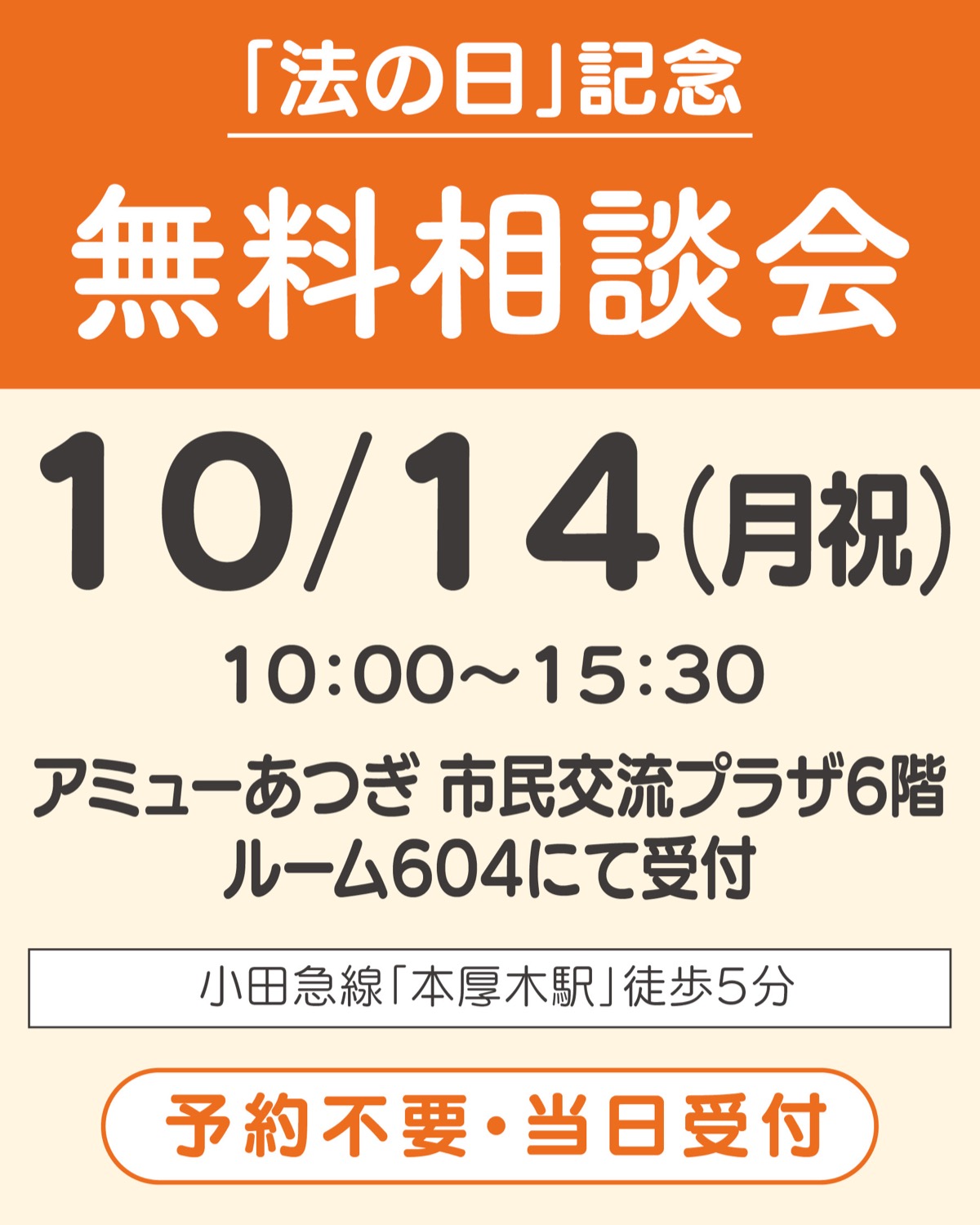 県司法書士会は10月1日の「法の日」に合わせて県内各地で相談会を実施する。(問)同会【電話】045・641・1372