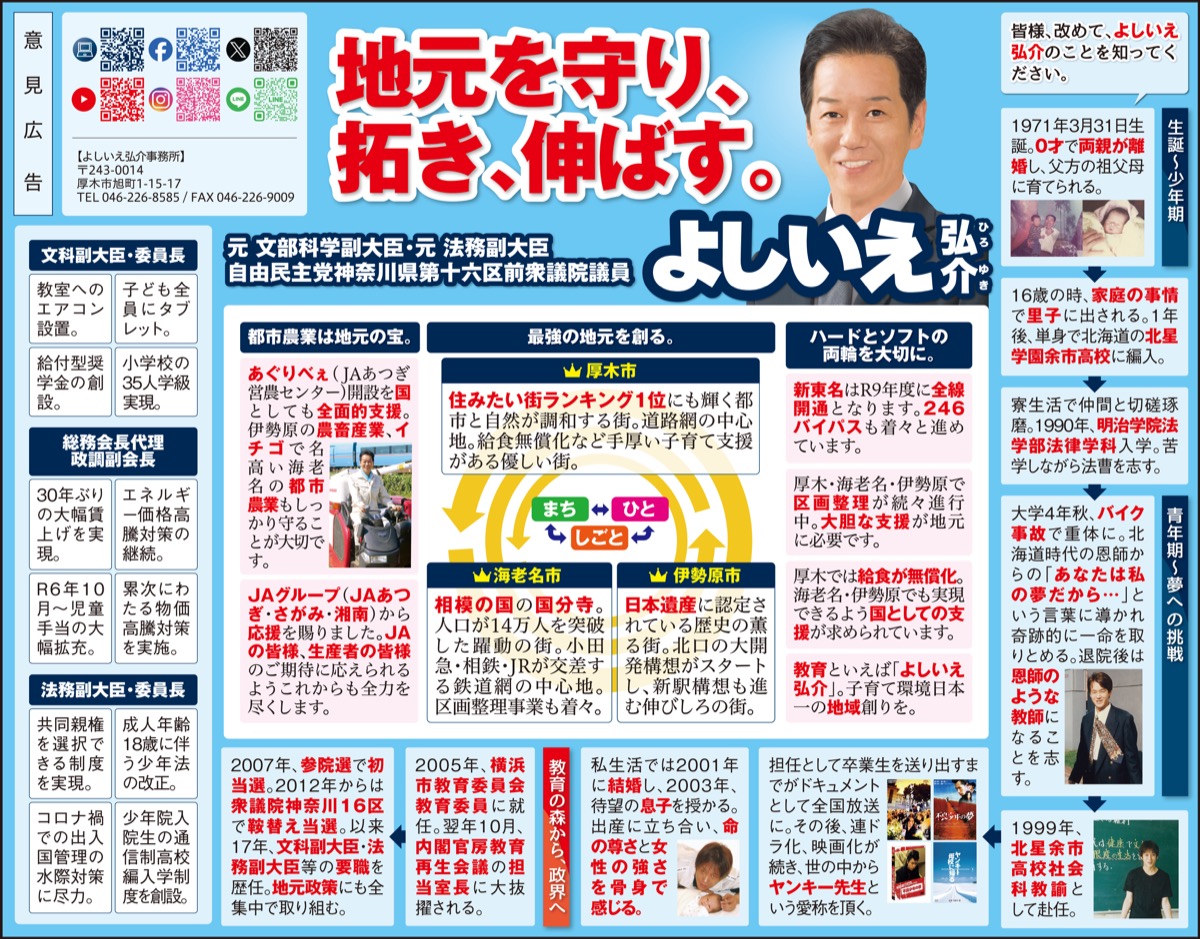 【4】教育といえば「よしいえ弘介」。子育て環境日本一の地域創りを。