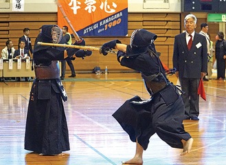 厚木剣道連盟(小山篤会長)が11月で創立70周年を迎えた。今年は記念大会として4日に連盟と交流を深める中国、韓国、香港の剣士を招き「令和6年度厚木市剣道選手権大会」を開いた。大会には9部門250人が参加。会場には声援や選手の掛け声が響き、白熱した試合が繰り広げられた。