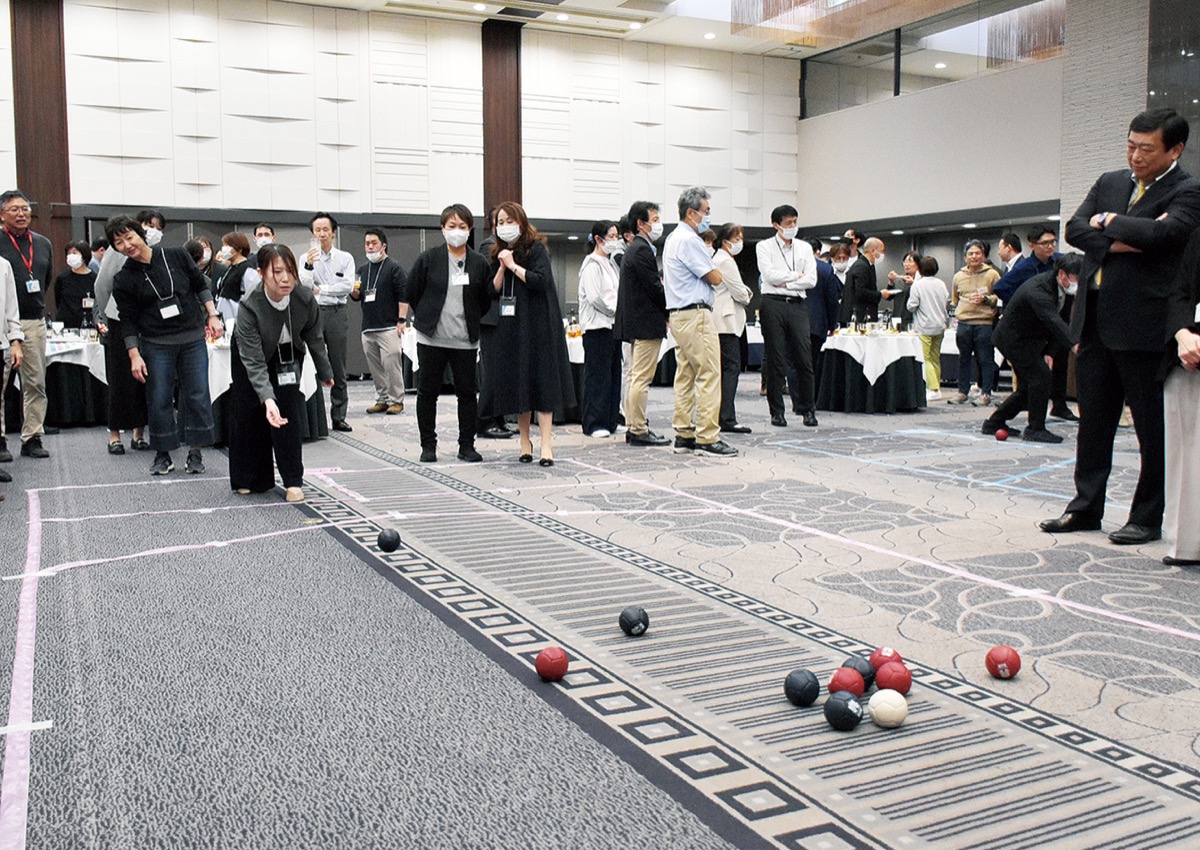 今年は140人ほどの職員が参加し、4つのコートに分かれて熱戦を展開。ジャックボール(目標球)と呼ばれる白いボールに自チームのボールが近づくと歓声が上がった。優勝は相州病院、準優勝は愛光病院だった。