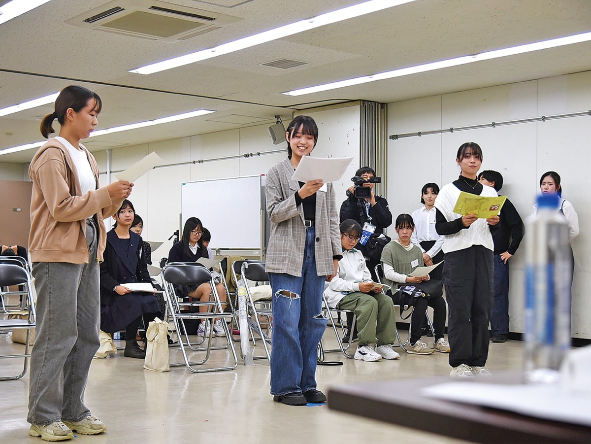 参加者は配布された台本のセリフを読みながら演技を披露。合唱部員役は、与えられた課題曲で自身の得意なパートを歌った。神品さんと雑賀さんら審査員は、参加者の演技を真剣な表情で見守った。
