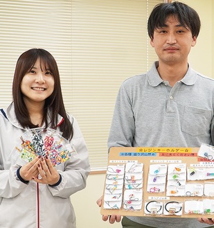 リサイクル事業を行うベストトレーディング株式会社(厚木市金田)に併設する就労継続支援B型事業所「サンライフ」では、就労支援の一環でエコ素材を使った傘マーカーやしおりの製作・商品化に取り組む。