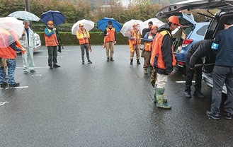 シーズンの開幕に合わせ、当日は猟区でハンターの案内人を務める清川村鳥獣保護協会(長澤徳勝会長)の会員や村役場の職員、厚木警察署の署員ら8人が集まった。役場職員は「本日より猟が解禁となりました。鉄砲自体が大変、危険なものなので細心の注意を払って管理をしてください。また猟区は人の土地であることを十分理解した行動をしていただけたら」と注意を呼び掛けた。
