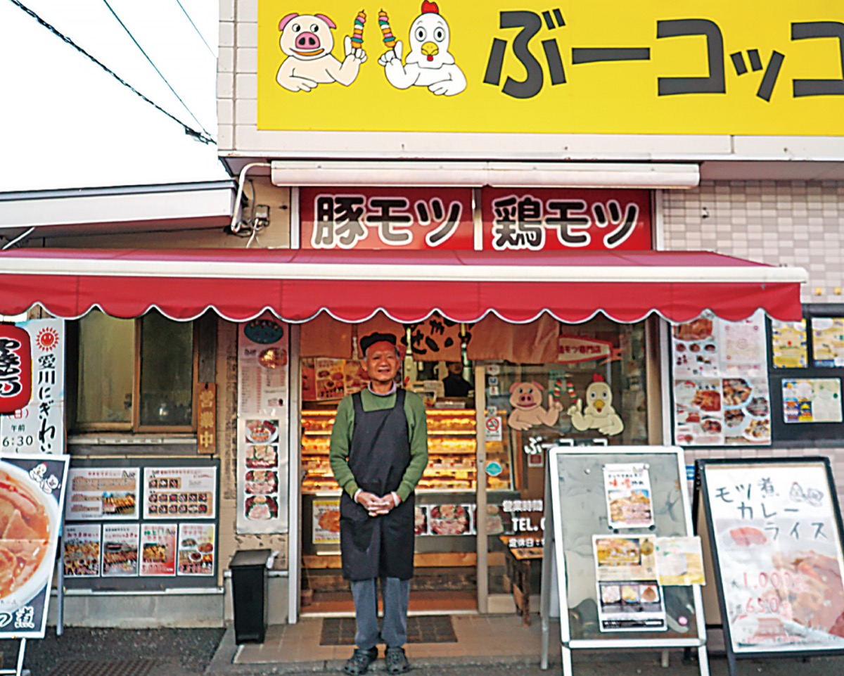 神奈川県商工会連合会会長表彰を受けた愛川町中津の「豚モツ・鶏モツ専門店 ぶーコッコ」は、神奈川県産の豚カルビ、シロコロをはじめとした各種豚モツ肉と山梨県産の健味鶏のモツ肉、定番焼鳥から希少部位の焼鳥40種、肉のキムチ、モツ総菜などを販売する。