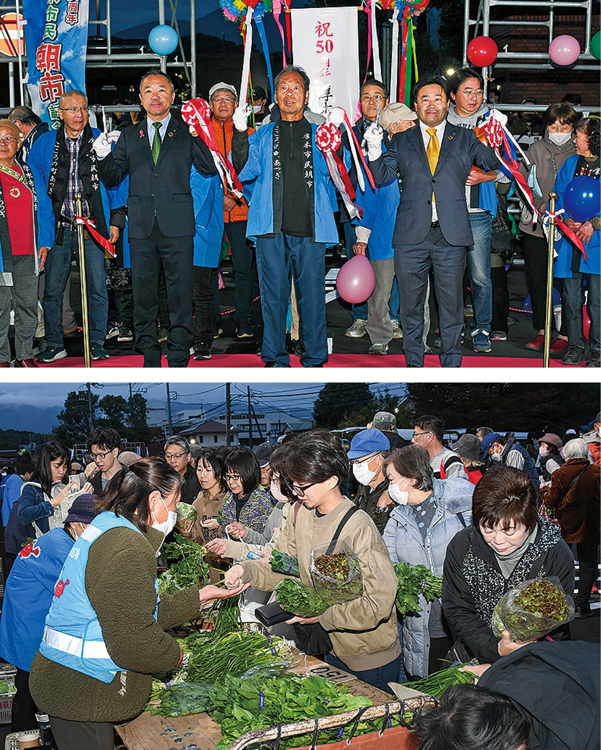 市民朝市出店組合長の伊藤洋文さんは、「多くの皆さまに支えられて50周年を迎えられた。これからも市民に愛される朝市を続けていきたい」と話した。