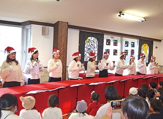 創立者の内田文江教諭がクリスチャンであったことから、園では毎年この行事を大切にしている。当日は園児のお遊戯に加え保護者のハンドベル隊が大活躍。歴代の先輩ママたちから受け継がれてきた取り組みを今年は10人が引継ぎ、園児たちの前で披露した。