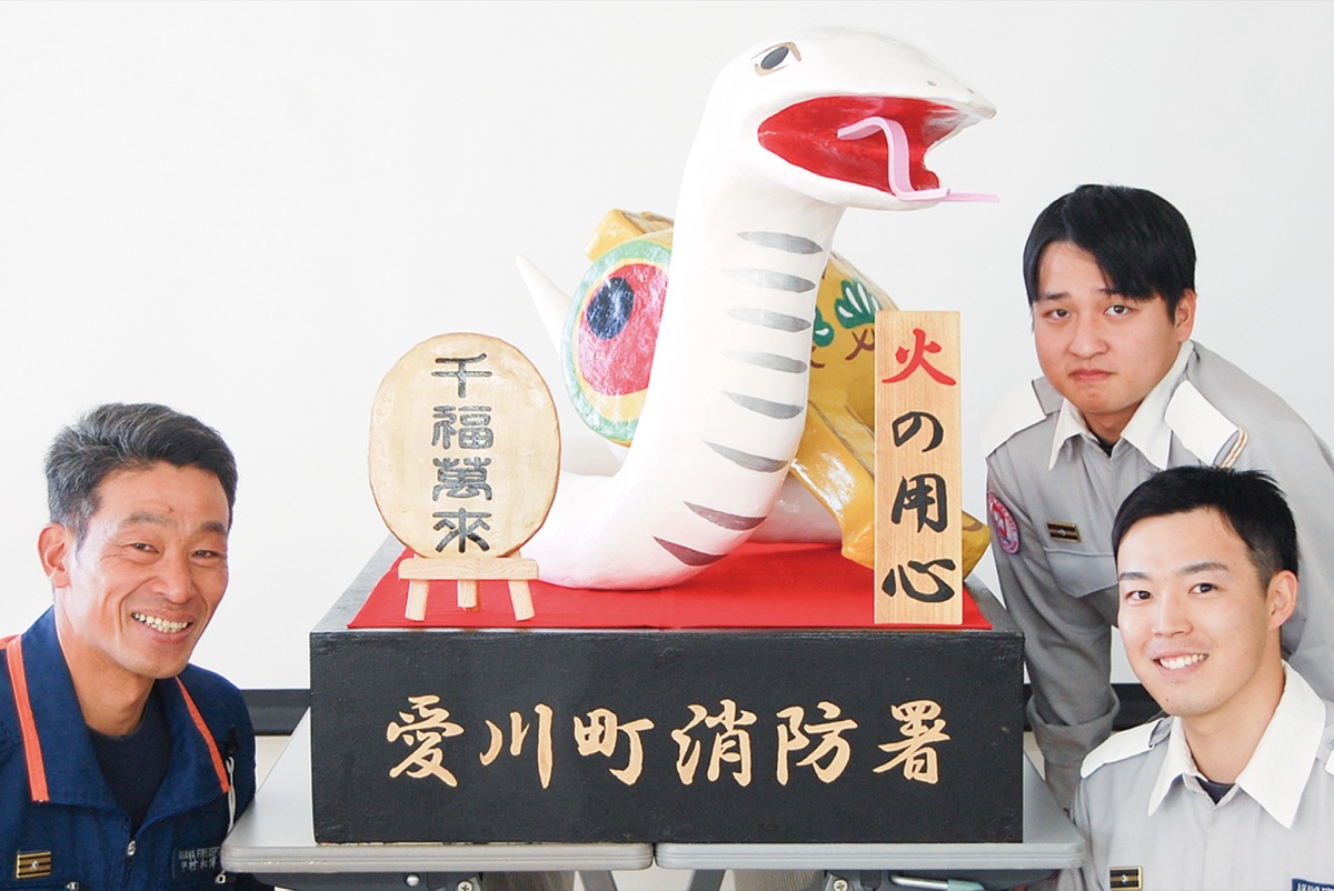 白蛇のオブジェは、1月11日(土)に行われる「愛川町消防出初式」でお披露目される。