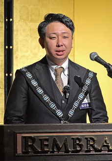 所信表明を行った木村理事長は、今年度のスローガンに掲げた「至誠」について思いを語り、「若者が夢や希望を持てる社会へ、ここに集った仲間と共に、大切な人や仲間の幸せを願いたい」とあいさつ。地震や風水害による被災地でのボランティア活動などを通して、青年会議所の活動意義を見出せたことや連帯意識の大切さを伝えた。