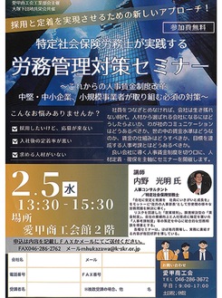 愛甲商工会工業部会が主催する労務管理対策セミナー「〜これからの人事賃金制度改革 中堅・中小企業、小規模事業者が取り組む必須の対策〜」が、2月5日(水)に同商工会館で行われる。