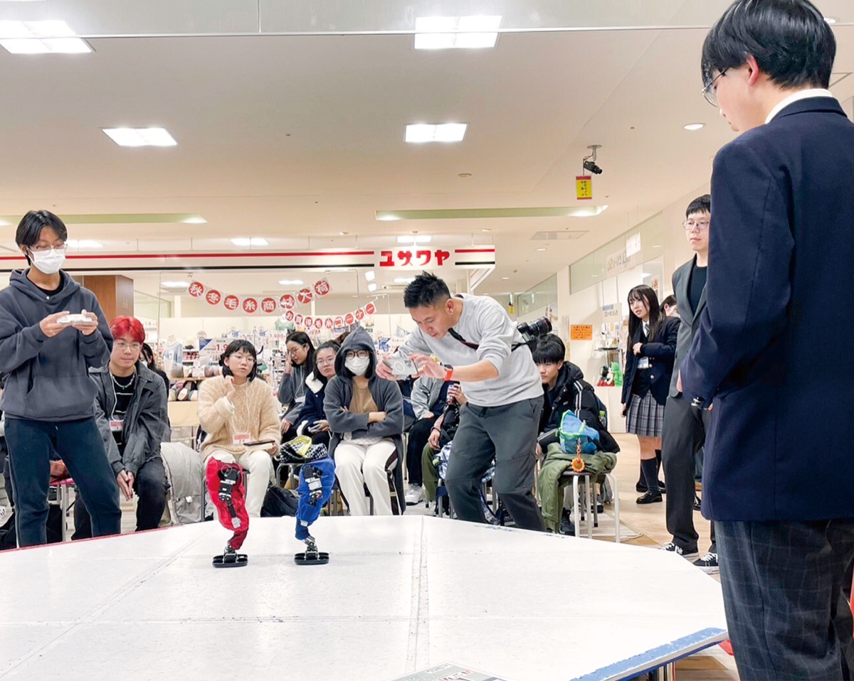 中国からの修学旅行生が1月21日、アミューあつぎのロボットゆうえんちを訪れ、クラーク記念国際高校厚木キャンパス(旭町)の生徒とロボットバトルを楽しんだ。