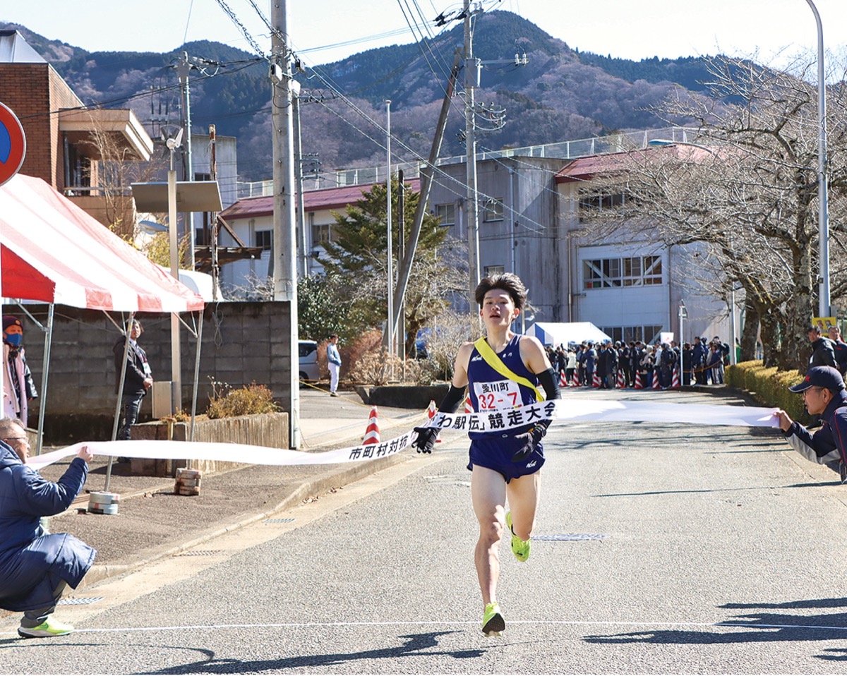 市町村対抗で中学生から社会人までの代表選手が参加する「かながわ駅伝」が、2月9日に山北町の丹沢湖周辺で開催され、愛川町が町村の部で3連覇を果たした。