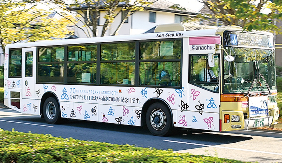 厚木市は、昨年8月から半年間の計画で運行してきた市制70周年記念ラッピングバス=提供写真=の運行期間を3月末まで延長している。