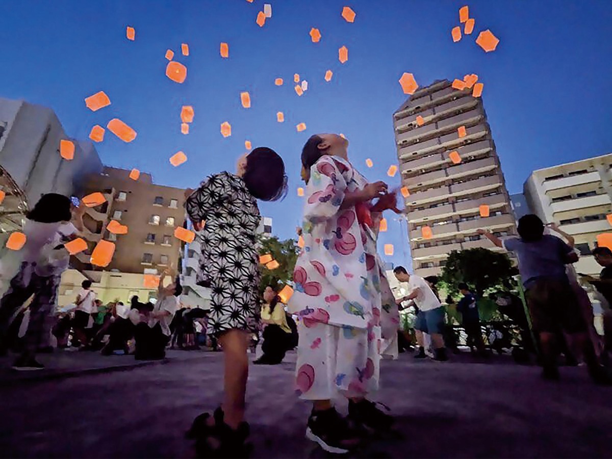 最優秀にあたる厚木市長賞を受賞したのは、鈴木美咲さん(戸室)の「灯篭に願いを込めて」。夏の風物詩「鮎まつり」の夕暮れに開かれたイベントで、浴衣姿の子どもたちが夜空に舞い上がる灯篭を見上げる姿を写した。