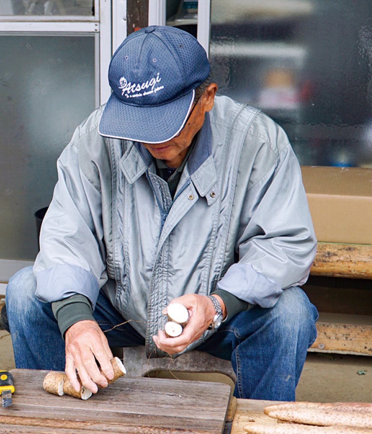 清川村自然薯育成会会員の山口静雄さん宅で、今年11月の収穫に向けた村特産品の自然薯の芽出し作業が行われた。